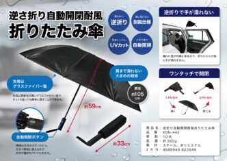 逆さ折りだから、折りたたんでも雨に濡れた面が内側に来るので、手が濡れない画期的な折りたたみ傘です。 開閉は手元のボタンでワンタッチ!片手で開閉できます。 骨先は柔軟なグラスファイバー製だから、ひっくり返っても簡単に元通り! 雨の日の車の乗り降りもラクラク!
